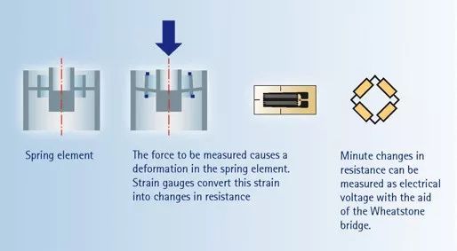 卓航精密偶然發(fā)現(xiàn)一張某環(huán)式拉壓力傳感器原理圖。這顯然是一種基于應(yīng)變片的力傳感器,由圖可見彈性體產(chǎn)生變形,并在其表面產(chǎn)生應(yīng)變。但一時卻不知道這種結(jié)構(gòu)的測量原理,于是就建立了一個簡單模型來進(jìn)行分析。橋路會采用4個應(yīng)變片,兩個被拉伸,另外兩個被壓縮。四個應(yīng)變片被組成一個惠斯通電橋,通過一個激勵電壓來進(jìn)行測量。當(dāng)四個電阻不同時,也就是當(dāng)應(yīng)變片的由應(yīng)變產(chǎn)生的電阻變化時,將產(chǎn)生一個輸出電壓。所以,從電橋原理上與應(yīng)變天平?jīng)]有太大區(qū)別,問題是這應(yīng)該如何布置應(yīng)變計?