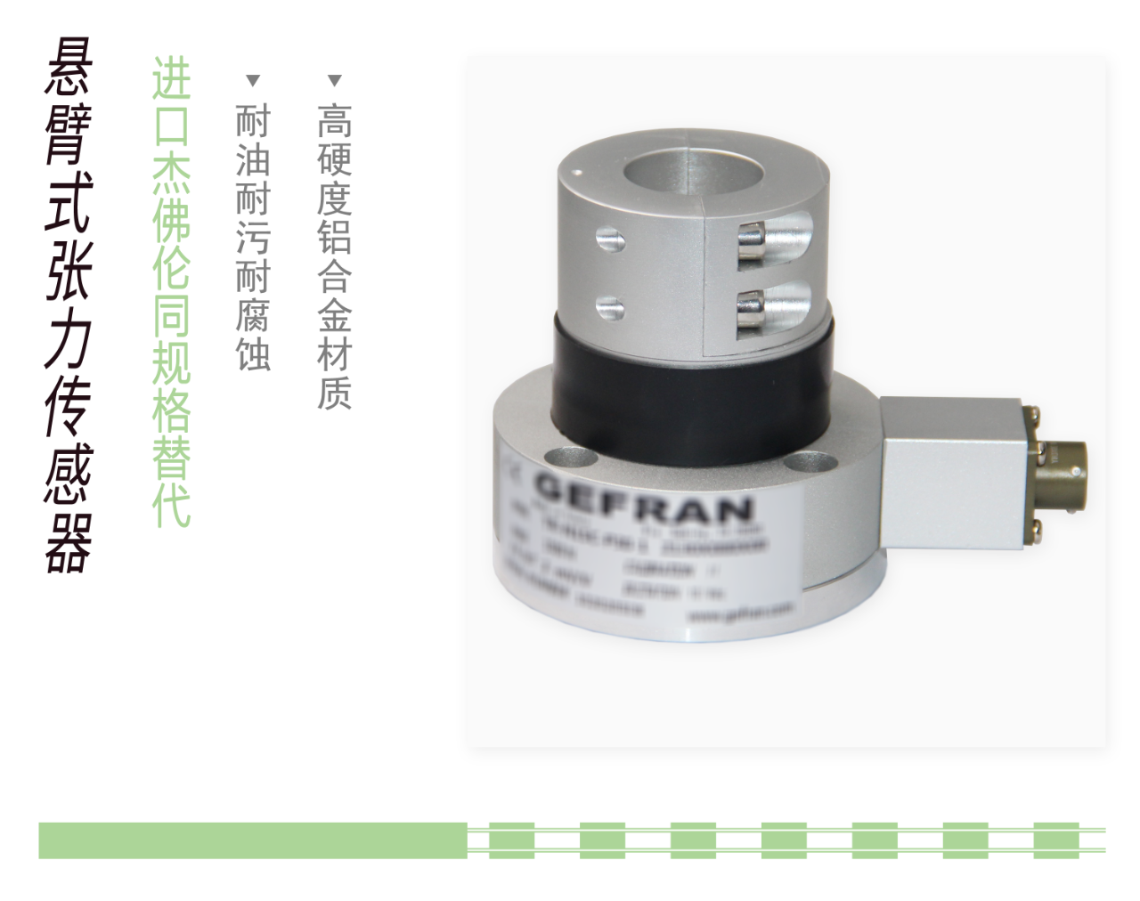 懸臂式張力傳感器采用應變片傳感器原理,內(nèi)置雙懸臂梁,同時貼于懸臂梁上的四片應變片組成惠斯通全橋,當外部在懸臂梁上產(chǎn)生力矩時,此應變?nèi)珮蚴テ胶舛敵霾铑~電壓,即傳感器輸出電壓。